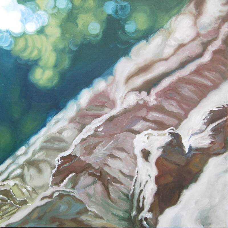 De afval van plastiek in mijn atelier wordt zoveel mogelijk beeldend verwerkt, met een spel van licht en schaduw, in een spontane en grillige schriftuur in de doeken.
